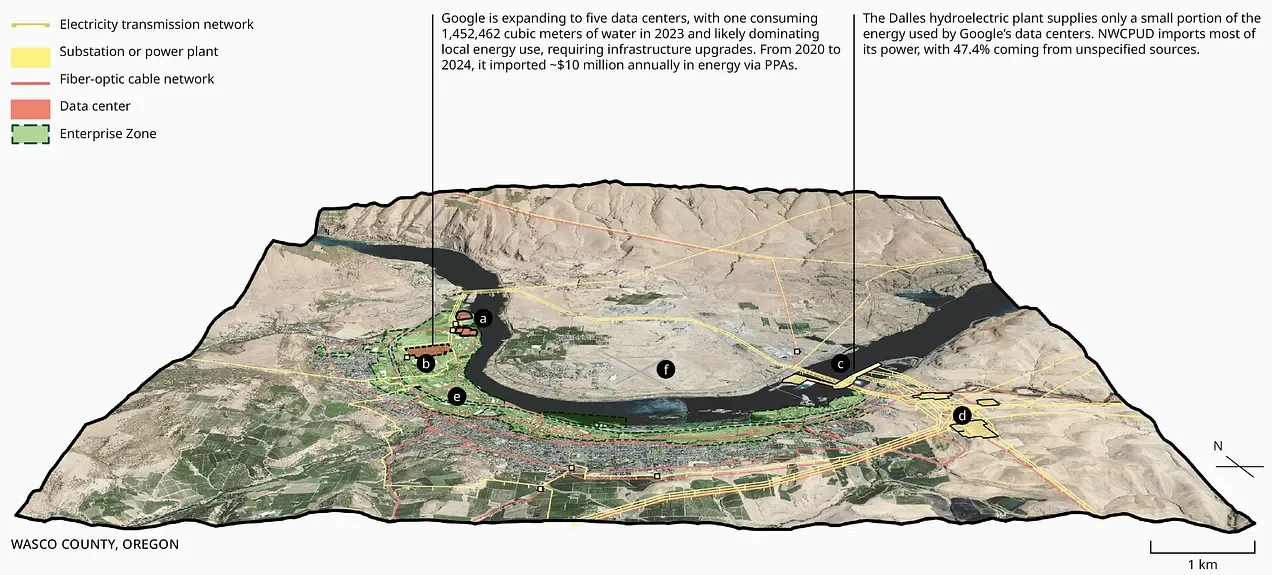 The story of The Dalles, Oregon, captures the double-edged nature of data center development—economic opportunity on one side, deep uncertainty on the other. When Lockheed Martin shut down its aluminum smelter, the town was in search of a new economic anchor. Google arrived in 2006 with the promise of jobs, investment, and a link to the high-tech economy. It seemed like a good deal at the time. But nearly two decades later, the reality is a little more complicated.