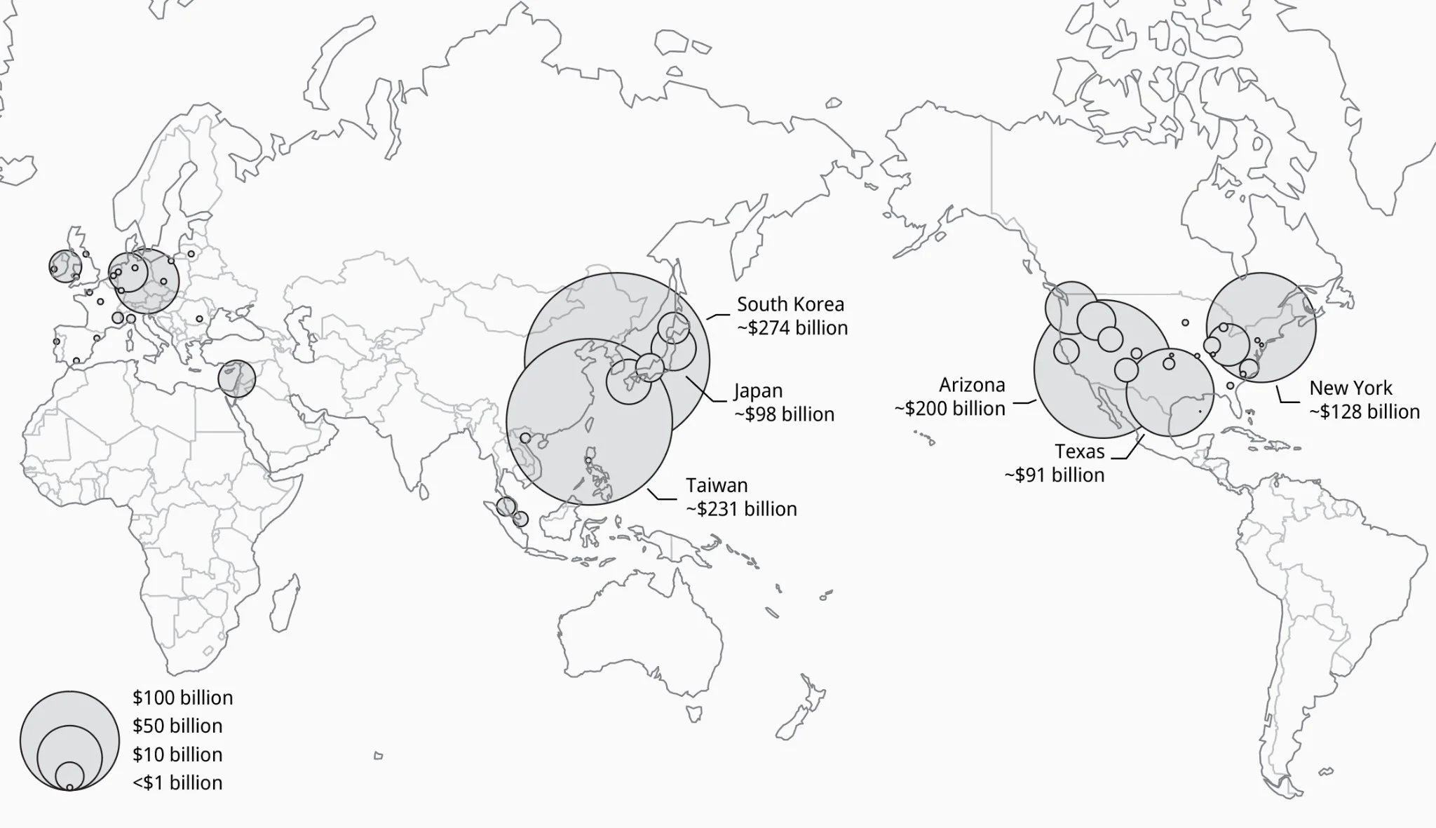 Between 2021 and 2025, announced semiconductor investments exceeded $630 billion in the U.S. alone. The global scale of investment is also staggering. Samsung’s new Pyeongtaek campus nears $100 billion—second to TSMC’s campus in Arizona. Taiwan also continues to invest heavily, with TSMC planning $100 billion in new projects. These are not just factories; they are massive territorial projects reshaping entire regions, from the deserts of Arizona to the Korean peninsula.