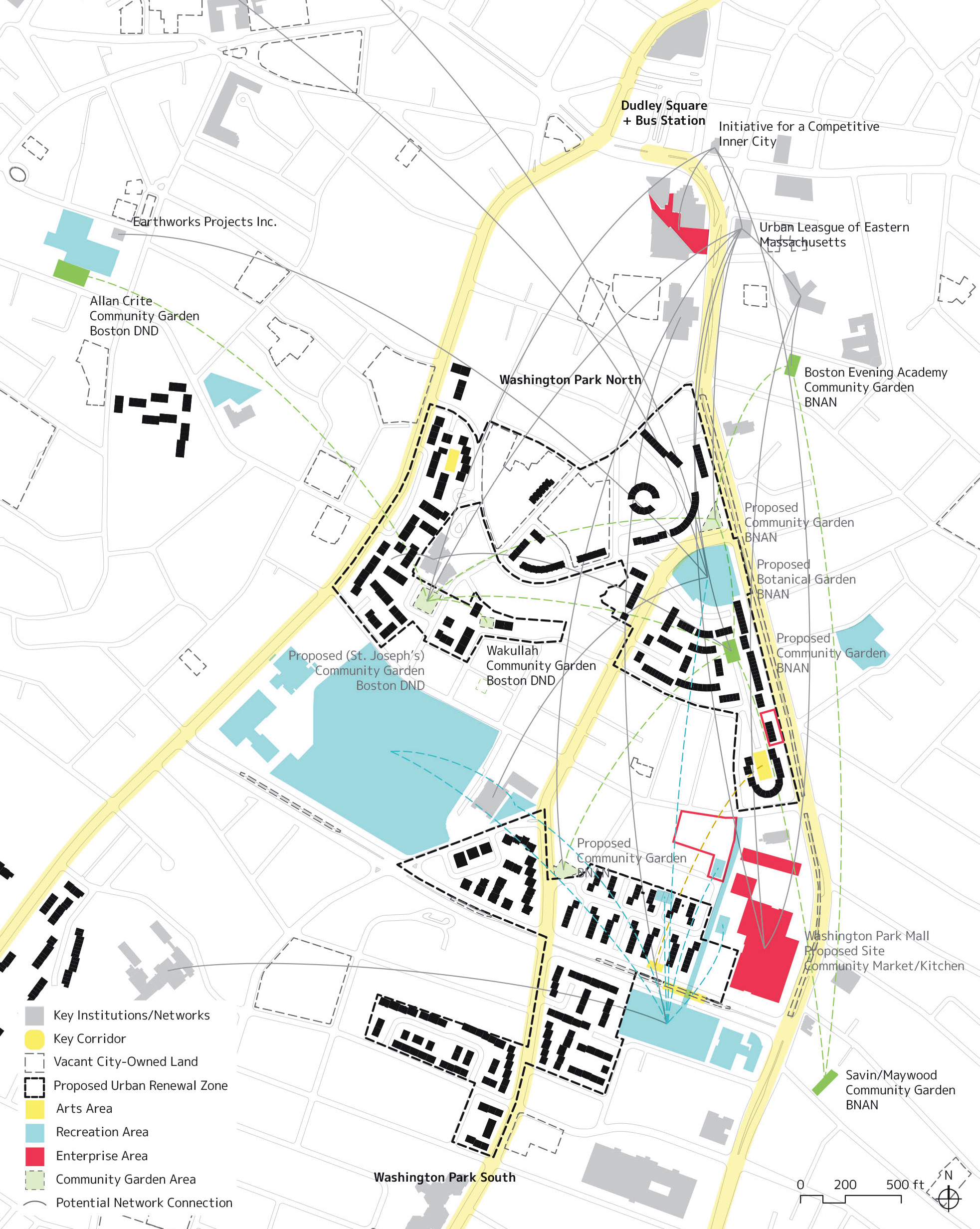 The core claim is simple: when people can move freely, meet one another, and occupy space with confidence, the social networks that form do not stop at the block or district line. Instead, they grow outward, linking residents to institutions, services, and allies beyond the neighborhood. In Roxbury, this means treating the community not as a passive recipient of development but as a coordinating node—pooling knowledge and resources, shaping how projects land, and negotiating pressures without defaulting to either acceptance or refusal. By stitching together networks of spaces and institutions, the project imagines Roxbury as part of a larger urban coalition, able to direct development rather than merely endure it.